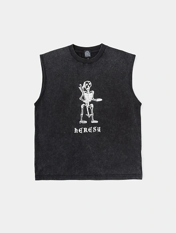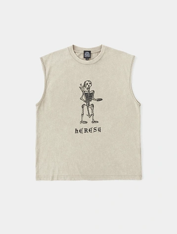 В весенней коллекции Heresy противостоит идее цифровизации и акцентирует внимание на аграрном ремесле. Принты и нашивки иллюстрируют ручной труд в оригинальной интерпретации бренда, приправленной щепоткой чёрного юмора. Сегодня это мультидисциплинарный бренд, создающий не только дизайн одежды, но и предметы искусства, публикации и мероприятия совместно с художниками, музеями и лейблами звукозаписи