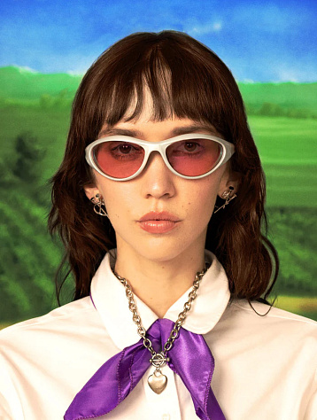 - нежно-розовые очки Bonnie Clyde, отсылающие к форме «кошачий глаз»;