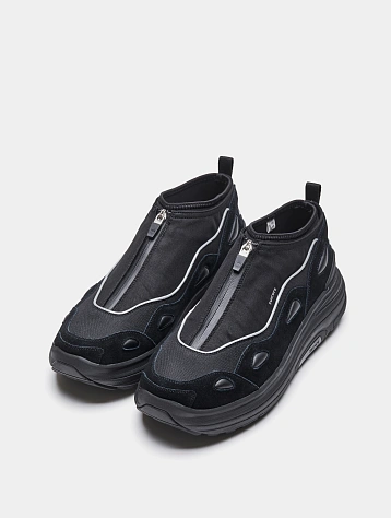 - к любопытным кроссовкам Suicoke Vibram 5Fingers в черном оттенке — эти пятипалые анатомичные пары позволяют стопе естественным образом ступать по поверхности земли;